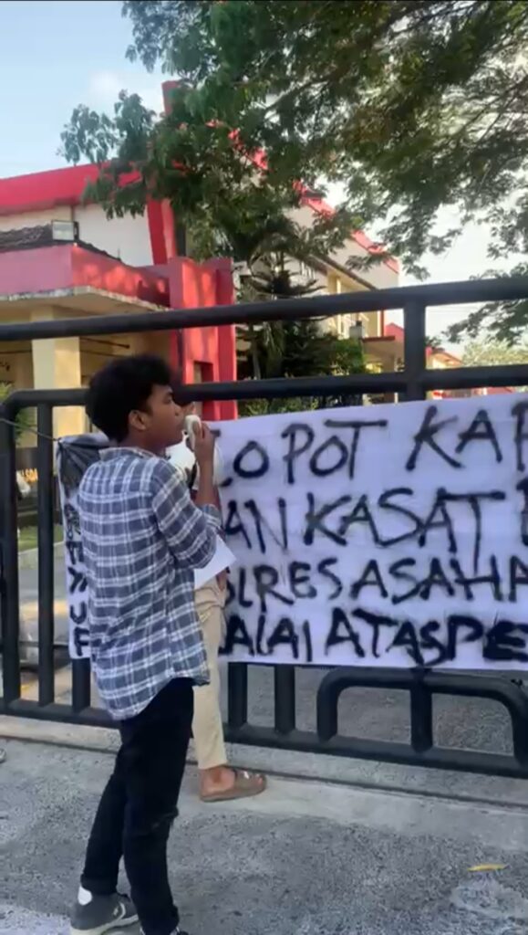 Medan – Puluhan mahasiswa yang tergabung dalam Rumpun Mahasiswa Asahan Raya Medan (RUMAYA) menggelar aksi unjuk rasa di Polda Sumatera
