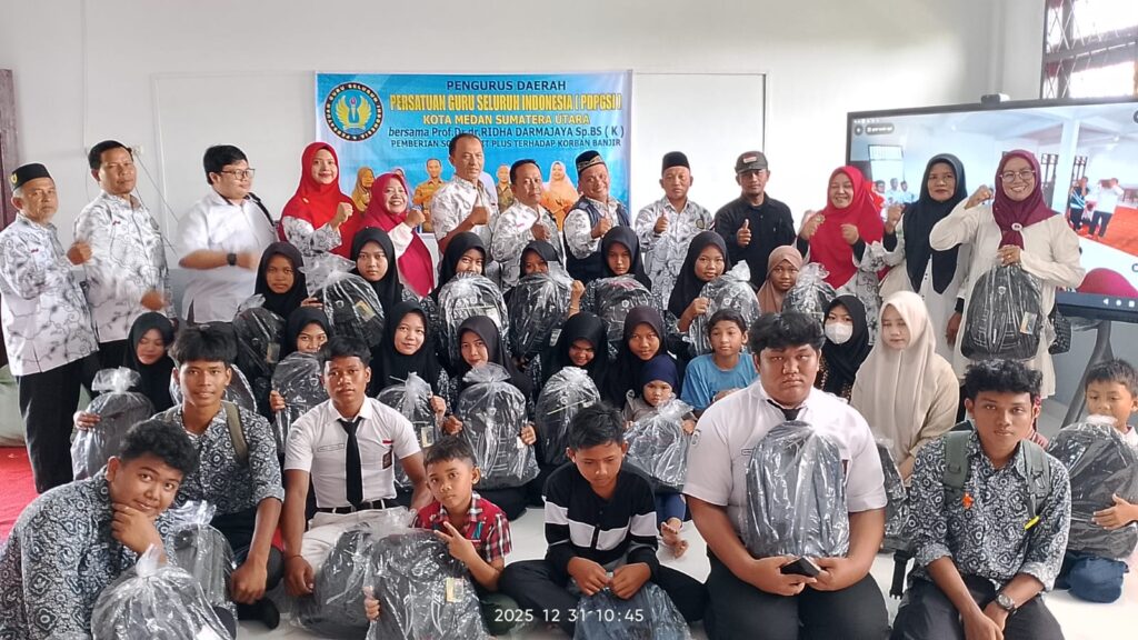 Kepedulian tidak mengenal waktu. PD-PGSI Kota Medan menyalurkan bantuan School Kids Plus bagi siswa-siswi terdampak banjir di dua lokasi: